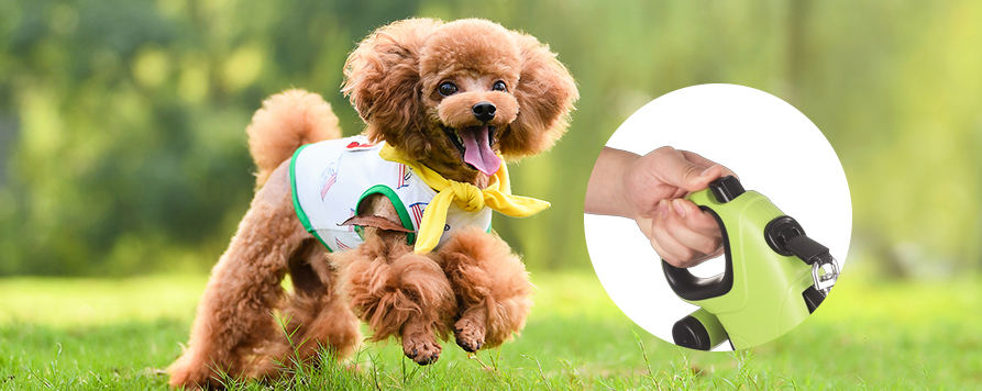 Povodac također ima funkciju spremanja vreće za smeće, što vlasnicima kućnih ljubimaca olakšava čišćenje za svojim ljubimcima u bilo kojem trenutku. Pametno dizajnirana kutija za pohranu čini vrećice za smeće uvijek dostupnima, izbjegavajući problem zaboravljanja ponijeti vrećice za smeće kad izlazite van i održavajući čistoću javnih prostora.