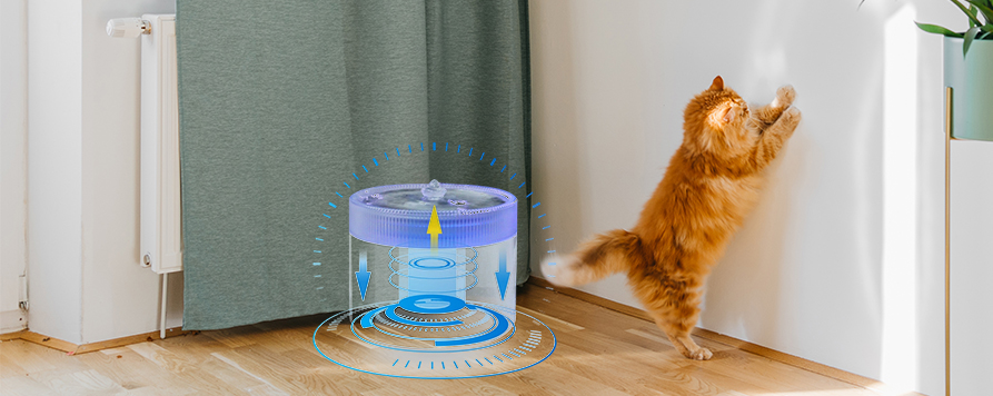 Kružni sustav filtracije fontane ima dizajn pročišćavanja od 360°. Voda neprekidno cirkulira unutar stroja, učinkovito uklanjajući nečistoće, mirise i bakterije, osiguravajući da kvaliteta vode ostaje stalno svježa i čista. 24-satna neprekinuta funkcija pročišćavanja osigurava kućnim ljubimcima da uvijek imaju pristup svježoj, zdravoj vodi, čime se povećava njihov unos vode i učinkovito sprječava probleme s mokraćnim traktom i dehidraciju.
