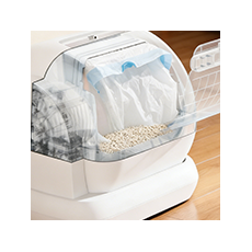 Prostrana unutrašnjost omogućuje mačkama da se okrenu i udobno čučnu. Otvoreni dizajn sprječava zagušljivost, dok struktura protiv prskanja sprječava curenje smeća.