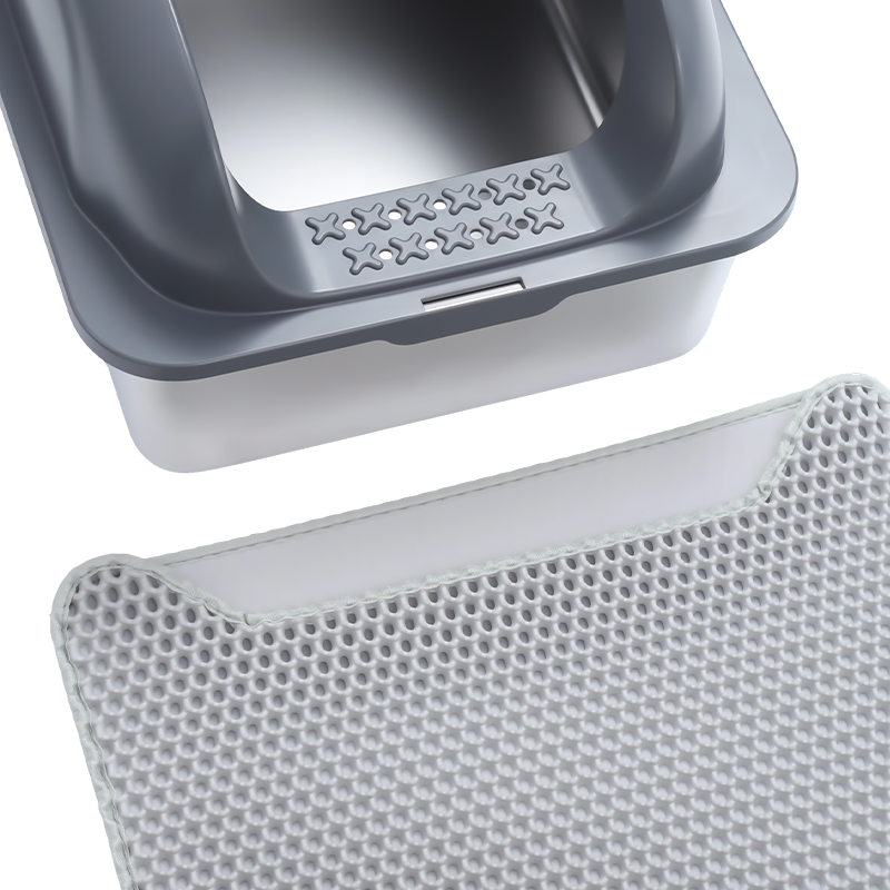 Kako bi se spriječilo prolijevanje pijeska, kutija za otpatke opremljena je visokom pregradom. Čak i ako se mačka pomiče ili grebe tijekom korištenja, steljka je učinkovito zatvorena unutar kutije, sprječavajući njeno iznošenje i održavajući okolinu čistom. Ovo je posebno korisno za aktivne mačke, budući da dizajn s visokom zaštitom učinkovito sprječava da prosuta stelja zaprlja pod, čime se smanjuju gnjavaže oko čišćenja.